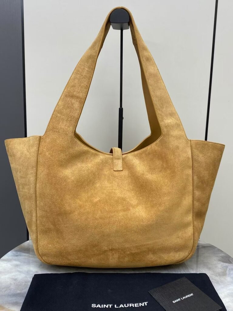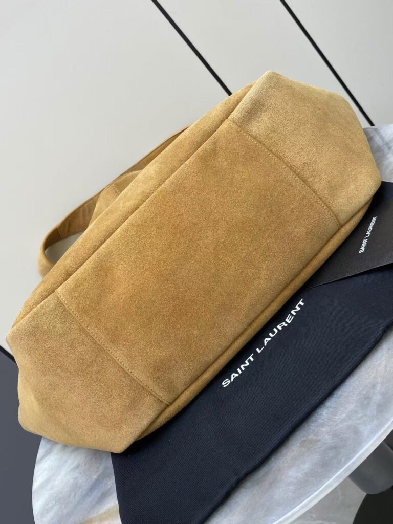 Horizontal tote version of the new bea handbag, with a leather tab closure, embellished with le cassandre Plenty of space with matching suede lining, featuring a main compartment and an internal zipped pocket. Designed with an interior lace-up, the sides can be folded or unfolded as desired. Soft deerskin bea Exclusive rare luxury texture, simple appearance coupled with this softness on the back of a lazy wind standing up to show that both sides can also be contracted, there are two forms … Model No.: 763435 Size: 50x28x18cm
