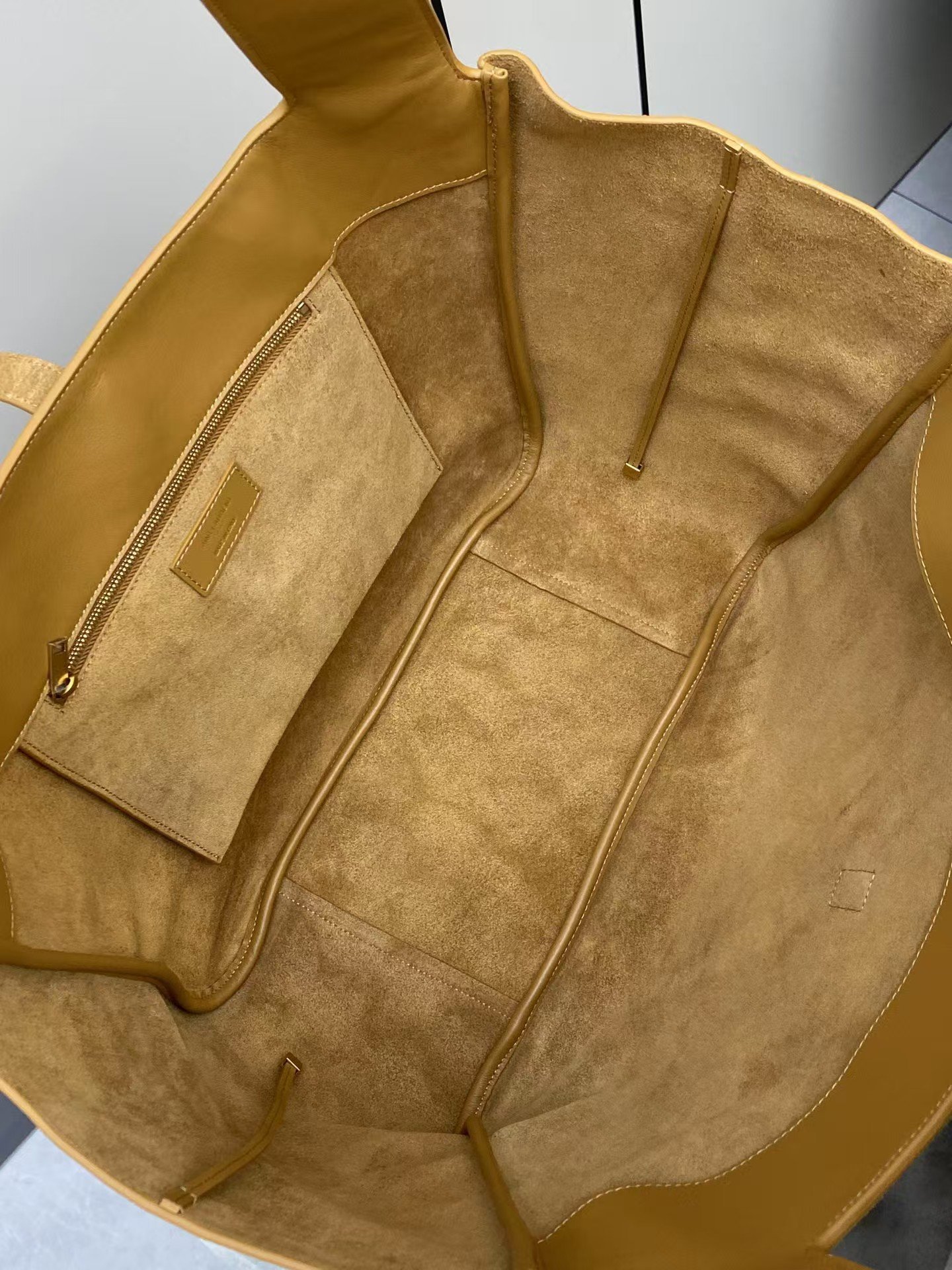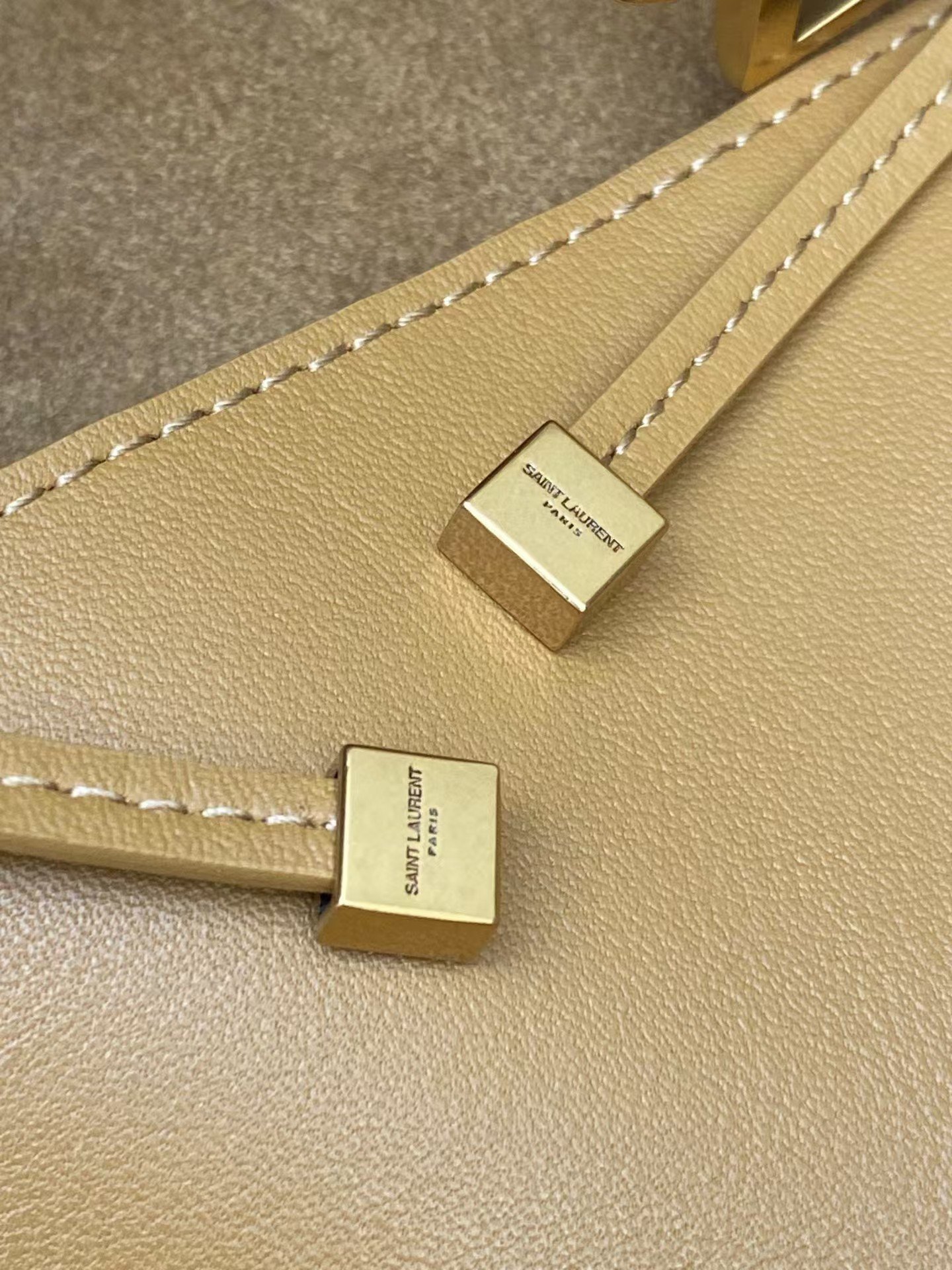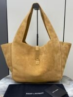 Horizontal tote version of the new bea handbag, with a leather tab closure, embellished with le cassandre Plenty of space with matching suede lining, featuring a main compartment and an internal zipped pocket. Designed with an interior lace-up, the sides can be folded or unfolded as desired. Soft deerskin bea Exclusive rare luxury texture, simple appearance coupled with this softness on the back of a lazy wind standing up to show that both sides can also be contracted, there are two forms … Model No.: 763435 Size: 50x28x18cm
