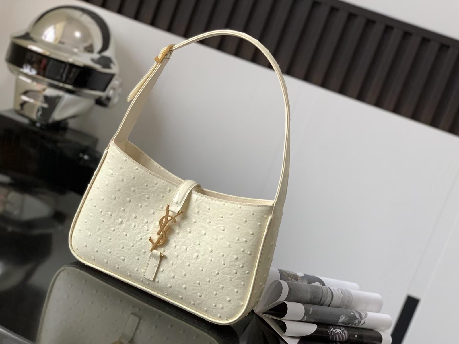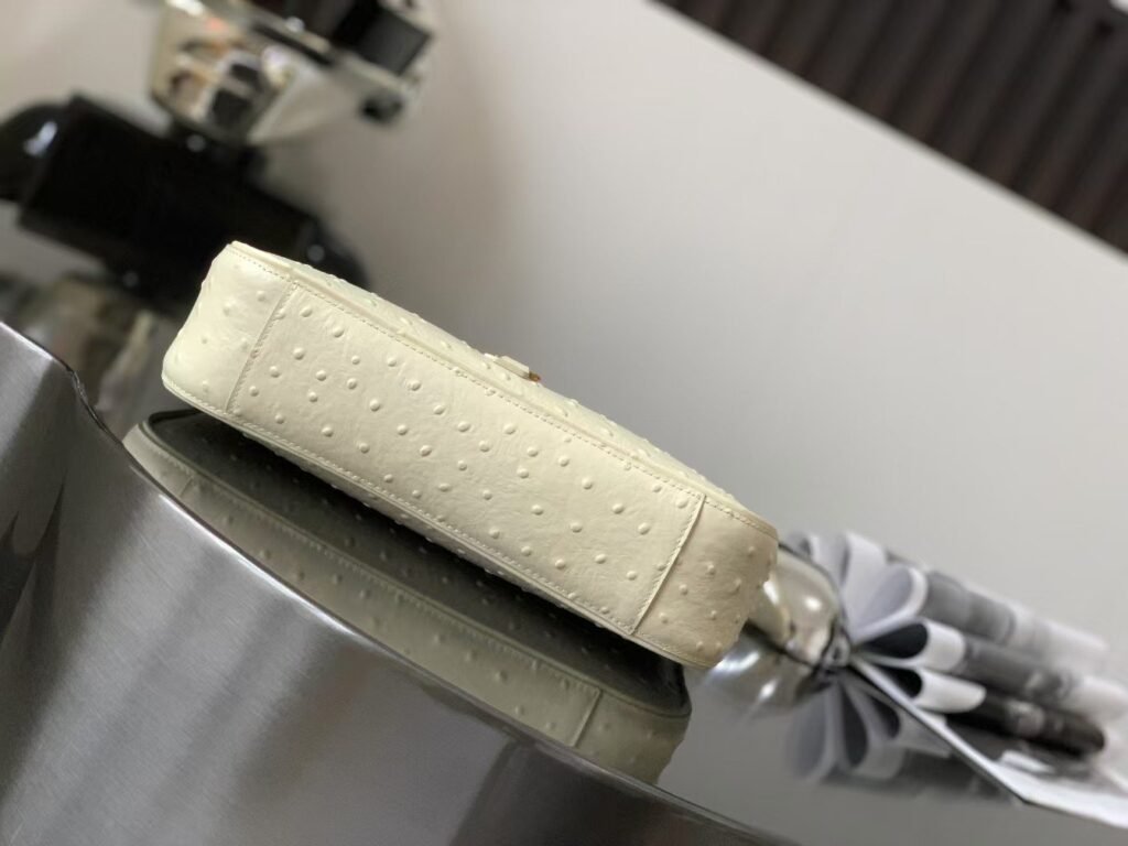 YSL Premium-657228 Milk white ostrich pattern gold buckle with a full set of the latest packaging Size: 25x14x6cm