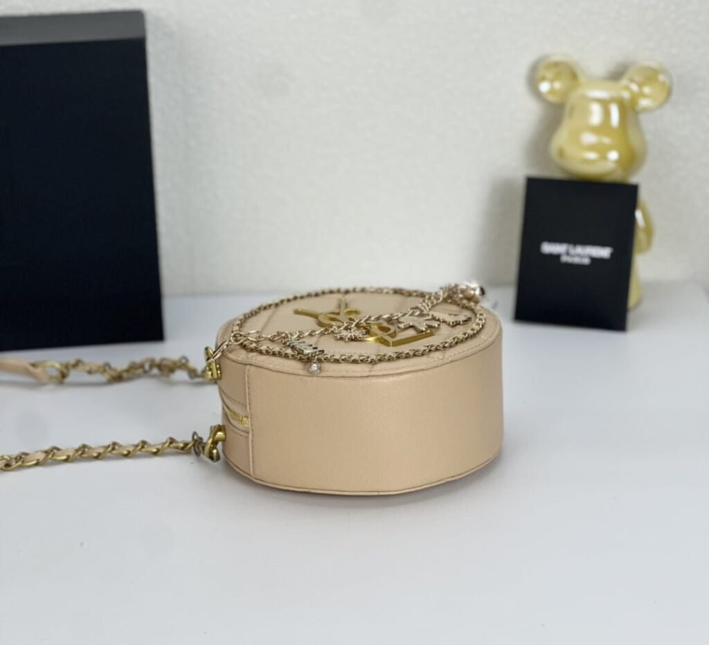 YSL round bun bag with chain strap apricot size: 17cm